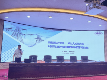 讲座伊始,杨圣彬以中国在全球科技领域的“两张名片”——高铁和特高压作为切入点,生动形象地阐释了“电力高铁”特高压电网的基本概念与运行原理。他指出,特高压输电技术作为中国自主创新的典范,不仅实现了远距离、大容量、低损耗的电力输送,更成为国家能源战略的重要支撑。在正式讲座环节,杨圣彬围绕中国特高压发展的辉煌历程、特高压变压器技术突破与工程应用、未来技术展望三大主题展开深入讲解,通过详实的数据分析、清晰的思维导图和震撼的工程实景展示,带领同学们走进特高压技术的科技殿堂。